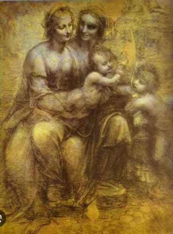 Ms McInness has got lots of artwork around the room. Prints of famous pictures. There’s one I’ve been staring at for the past little while. It calms me down. It’s a drawing by Leonardo da Vinci called Cartoon on St Anne with Madonna and Child and St John. I think it’s the most beautiful picture I’ve ever seen. Some of the detail is incomplete, but the faces – of the two women and of the two babies – are so perfect it makes me want to cry. The women have the faintest of smiles, as if they’re utterly at peace with each other, with their babies, with the way things are. Looking at this drawing makes me feel different, as if there are times in a life when everything is as it should be, where goodness and beauty are the principles that organise the world. I’ve been staring at the picture ever since the class left and Ms McInness shut the door.